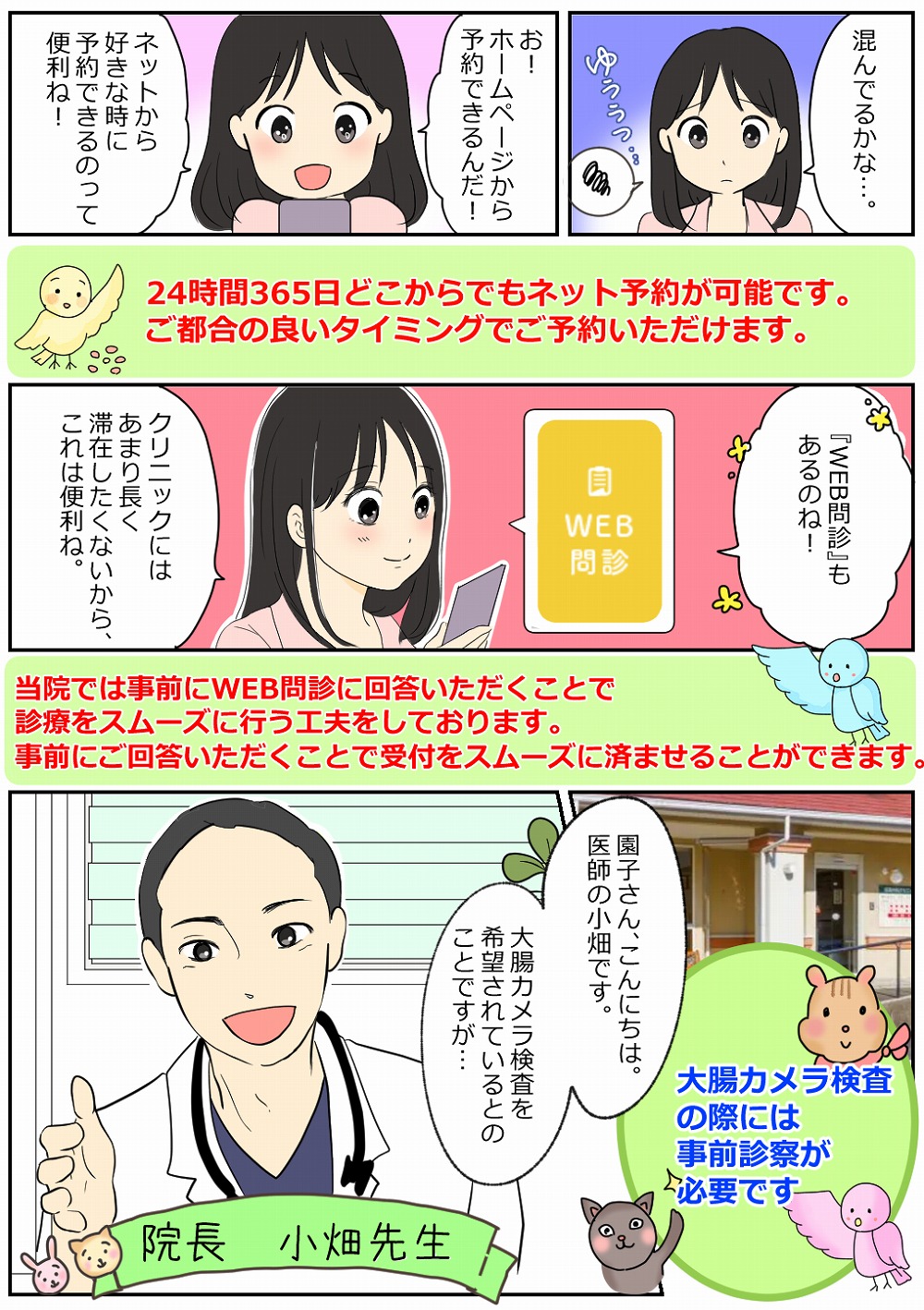 診察予約、内視鏡検査予約、健診予約は、web予約がスムーズです。